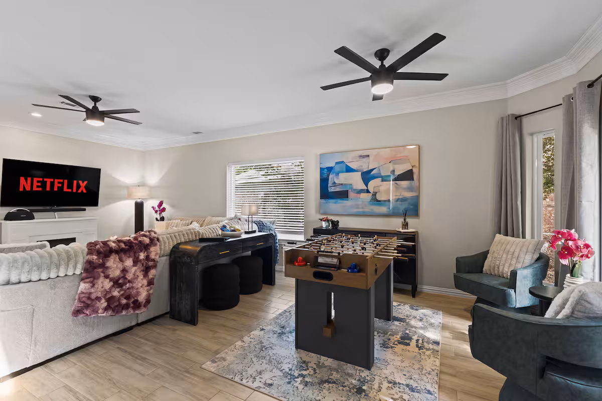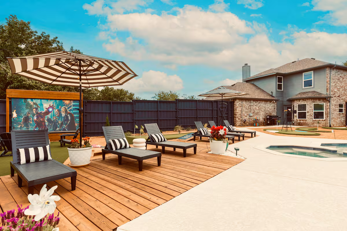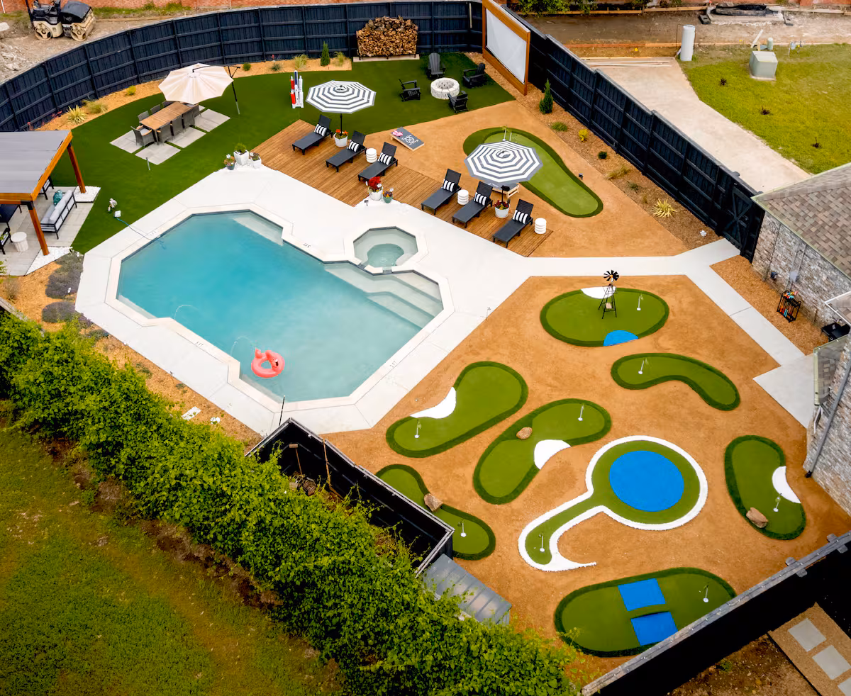 Each image in our gallery offers a glimpse into the comfort, style, and entertainment that define this Frisco retreat—from spacious bedrooms and inviting living areas to the game-filled indoor lounge and resort-style backyard with a pool, spa, and private mini-golf course. As you scroll through, you’ll get a sense of the memorable moments that await here, whether it’s mornings by the water, family dinners under the patio lights, or cozy evenings spent together in a space designed for connection and relaxation.